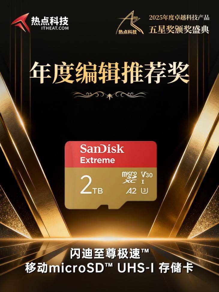 深编纂评审团决计经热门科技的资, 存储卡依附高速读写本能、耐用性及大容量适用性闪迪至尊极速™转移microSD™ UHS-I,像存储的行业首选告成成为转移影,奖年度编纂举荐奖荣获2025五星。